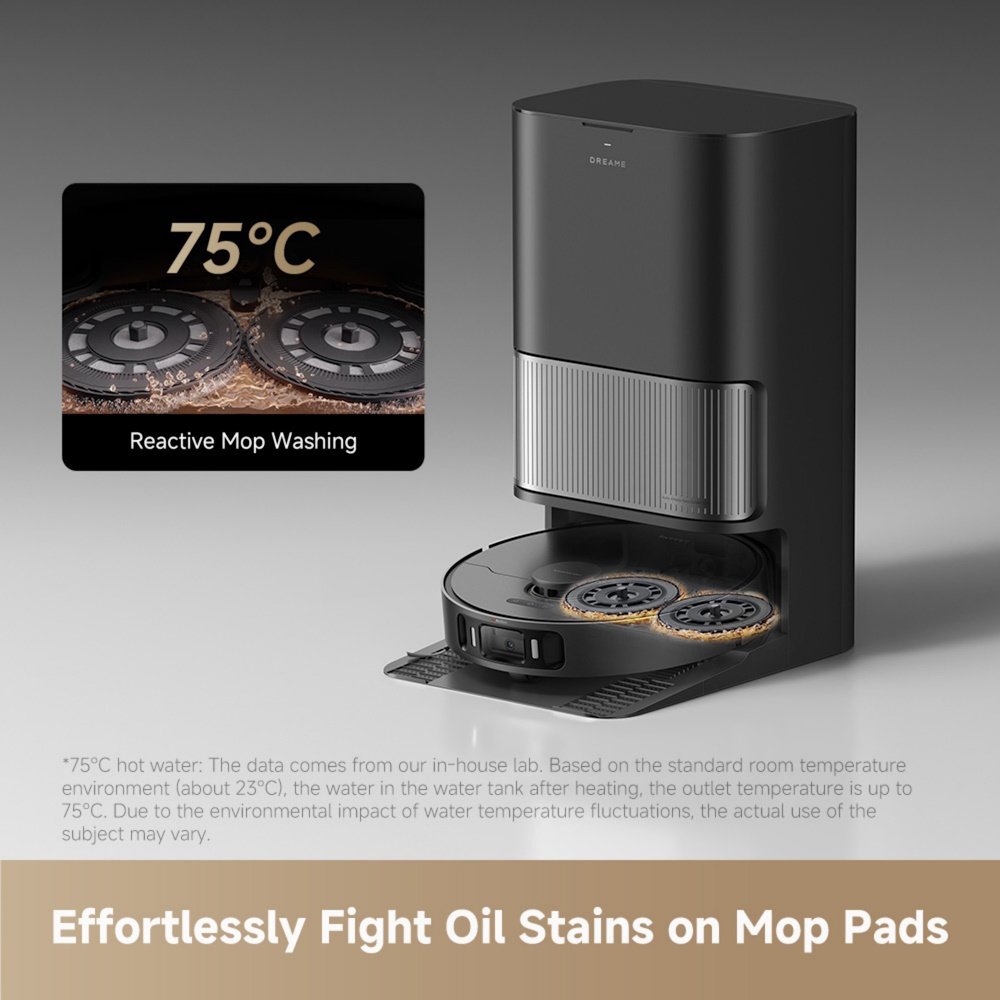 Po končanem čiščenju se robot samodejno vrne v postajo, kjer poteka praznjenje prahu, pranje in sušenje mop-krp, polnjenje in/ali izpraznitev vodnih rezervoarjev — kar pomeni resnično minimalno vzdrževanje s strani uporabnika.